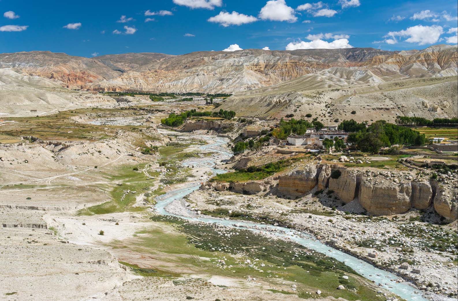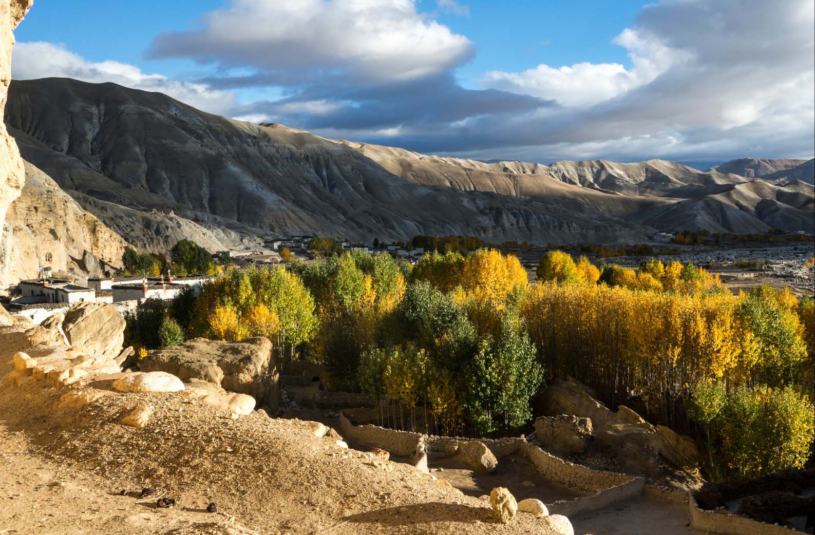 Vanaf Jomsom start de trekking en lopen we langzaam omhoog met als een van de hoogtepunten de ommuurde stad Lo Manthang, het hart van het voormalige koninkrijk. Onderweg bezoeken we eeuwenoude kloosters, boeddhistische rotstempels en grotten, en zien we een landschap dat nergens anders in Nepal zo indrukwekkend is.