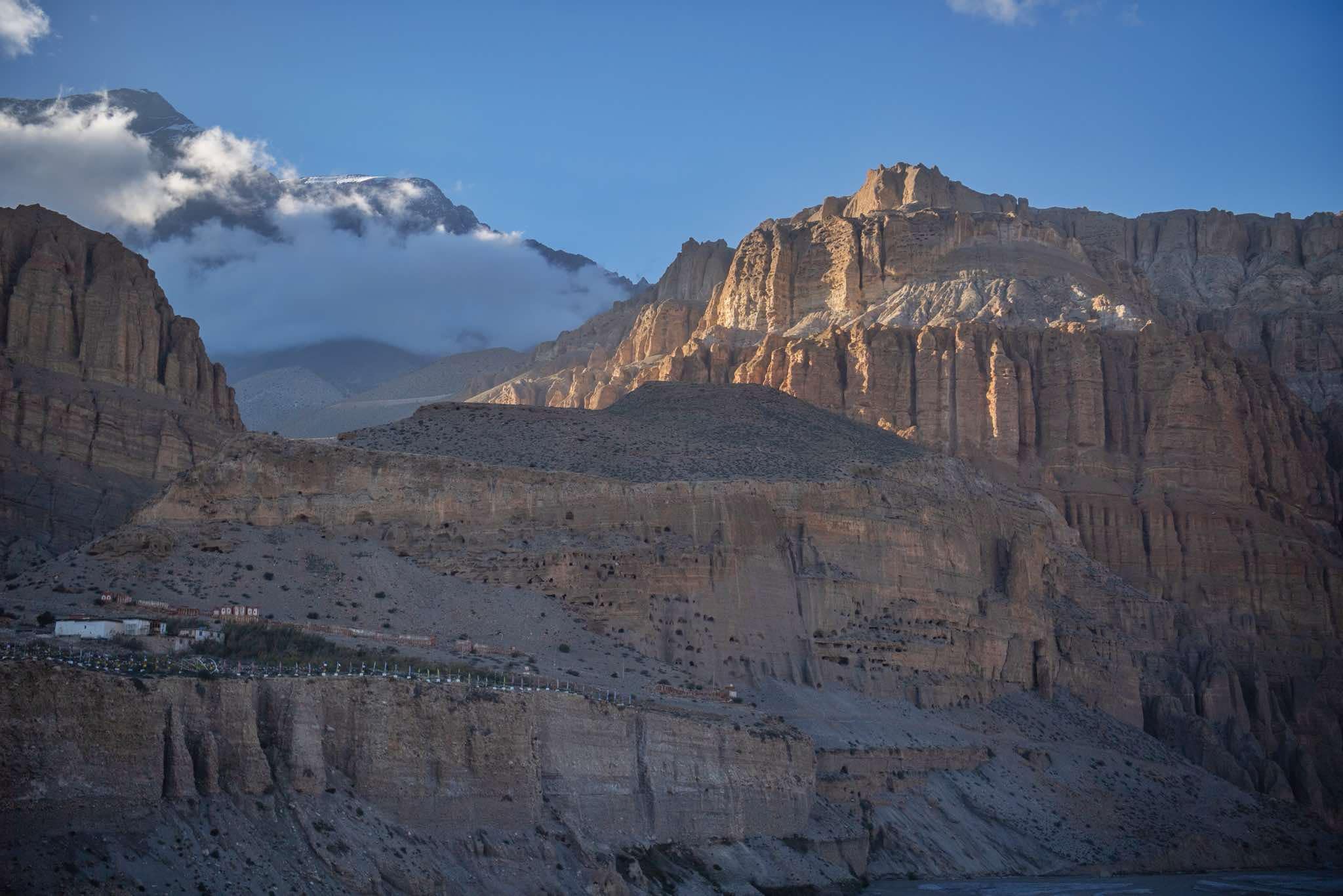 Het pad voert ons naar Lo Manthang, het ommuurde stadje dat het hart vormt van het voormalige koninkrijk Mustang. Onderweg zie je kleurrijke rotsformaties, diepe kloven en serene kloosters. Vanuit Lo Manthang is het mogelijk om te klimmen naar uitzichtpunten zoals de Nyi La Pass (±4.010 m) of rustig de omgeving te ontdekken en te genieten van het bijzondere landschap en de Tibetaanse cultuur.